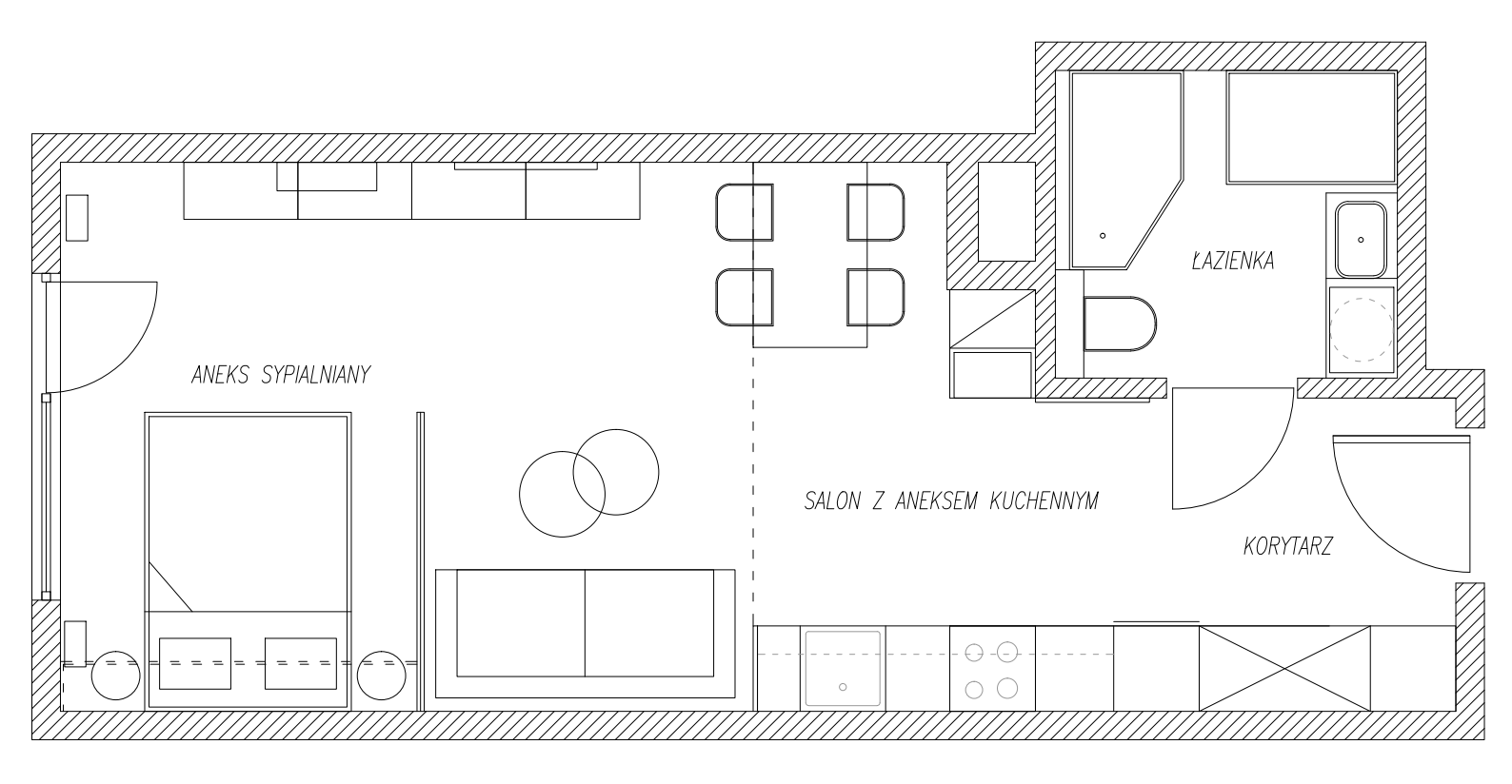 Mieszkanie na nowym osiedlu, tuż przy pętli tramwajowej i w bliskiej odległości od centrum Krakowa, zostało zaprojektowane z myślą o maksymalizacji potencjału najmu. Niewielki metraż nie był tu ograniczeniem, a punktem wyjścia do stworzenia przestrzeni, która przyciąga zarówno studentów, jak i turystów - dwóch kluczowych odbiorców tej lokalizacji.